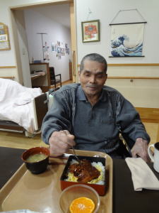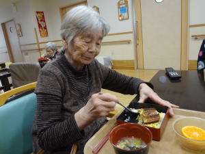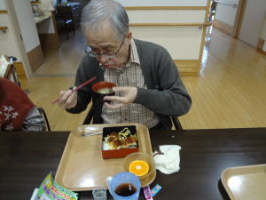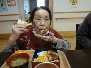 | 1月1日は、年始の会など、色々盛りだくさんでした。でも、1日だけが特別では味気ないのでは?との意見から、今年は2日にも特別な料理をご用意しました!ズバリうな丼( `ー´)ノしっかりとスタミナを付けて、寒い冬を乗り越えましょう♪ | |